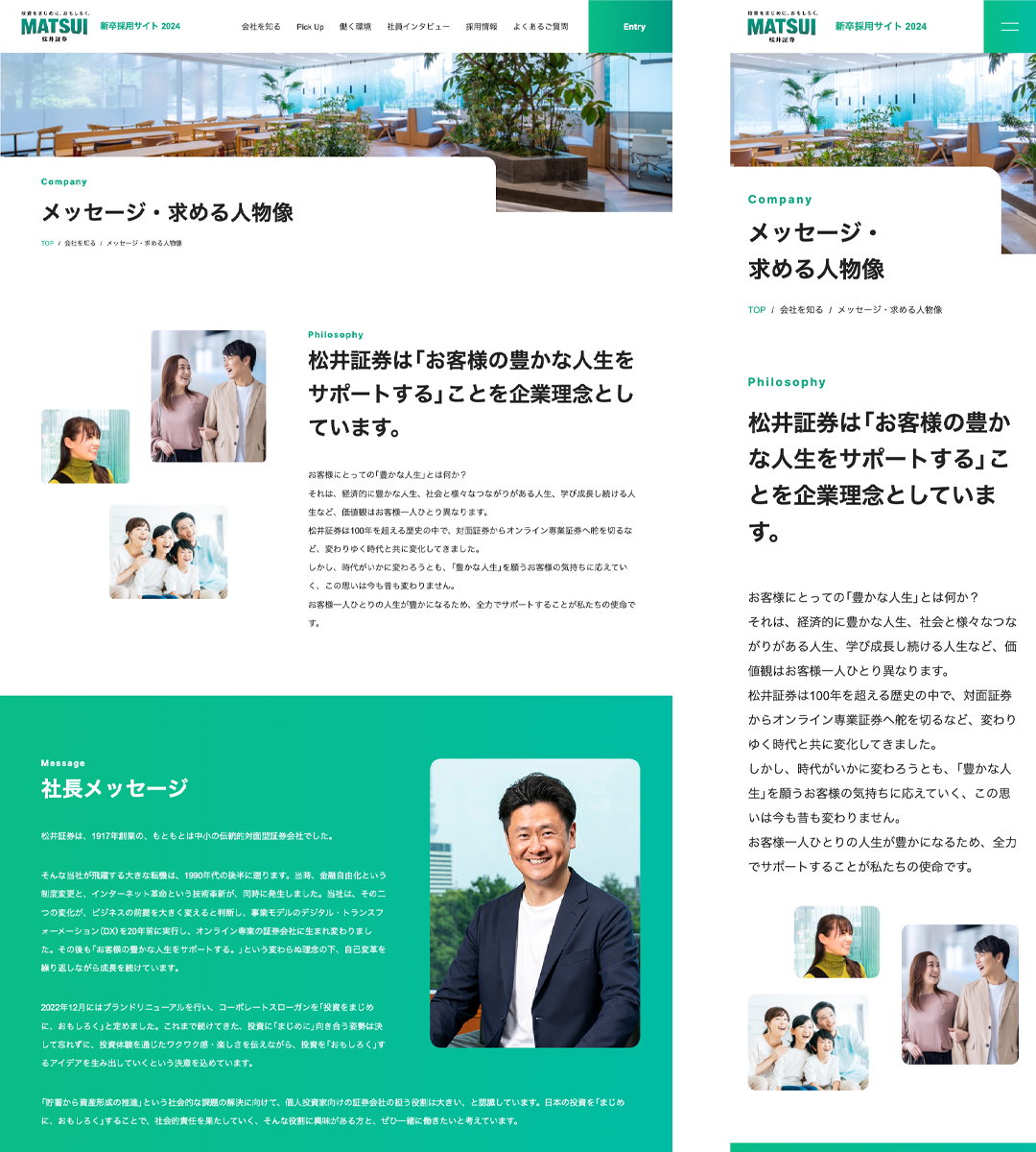松井証券株式会社様の2024年度新卒向け採用サイト制作を担当させていただきました。