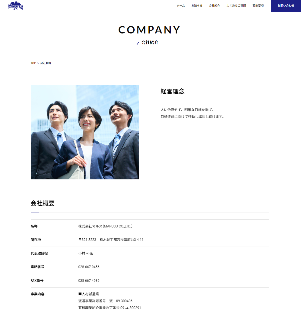 人材紹介をされている、株式会社マルス様のコーポレート兼採用サイトです。