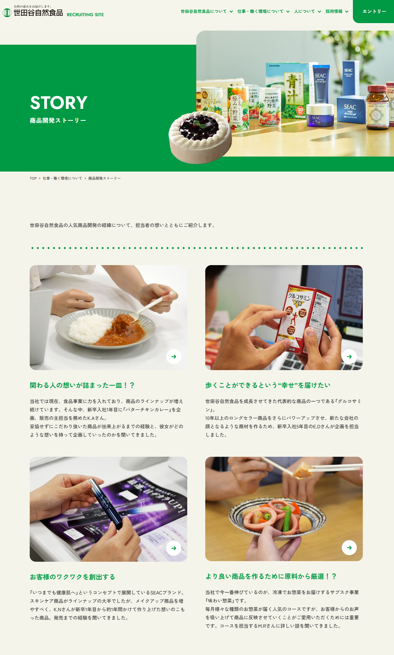 コーポレートカラーのグリーンを基調として、世田谷自然食品様の温かい雰囲気が伝わるようなデザインにしました。