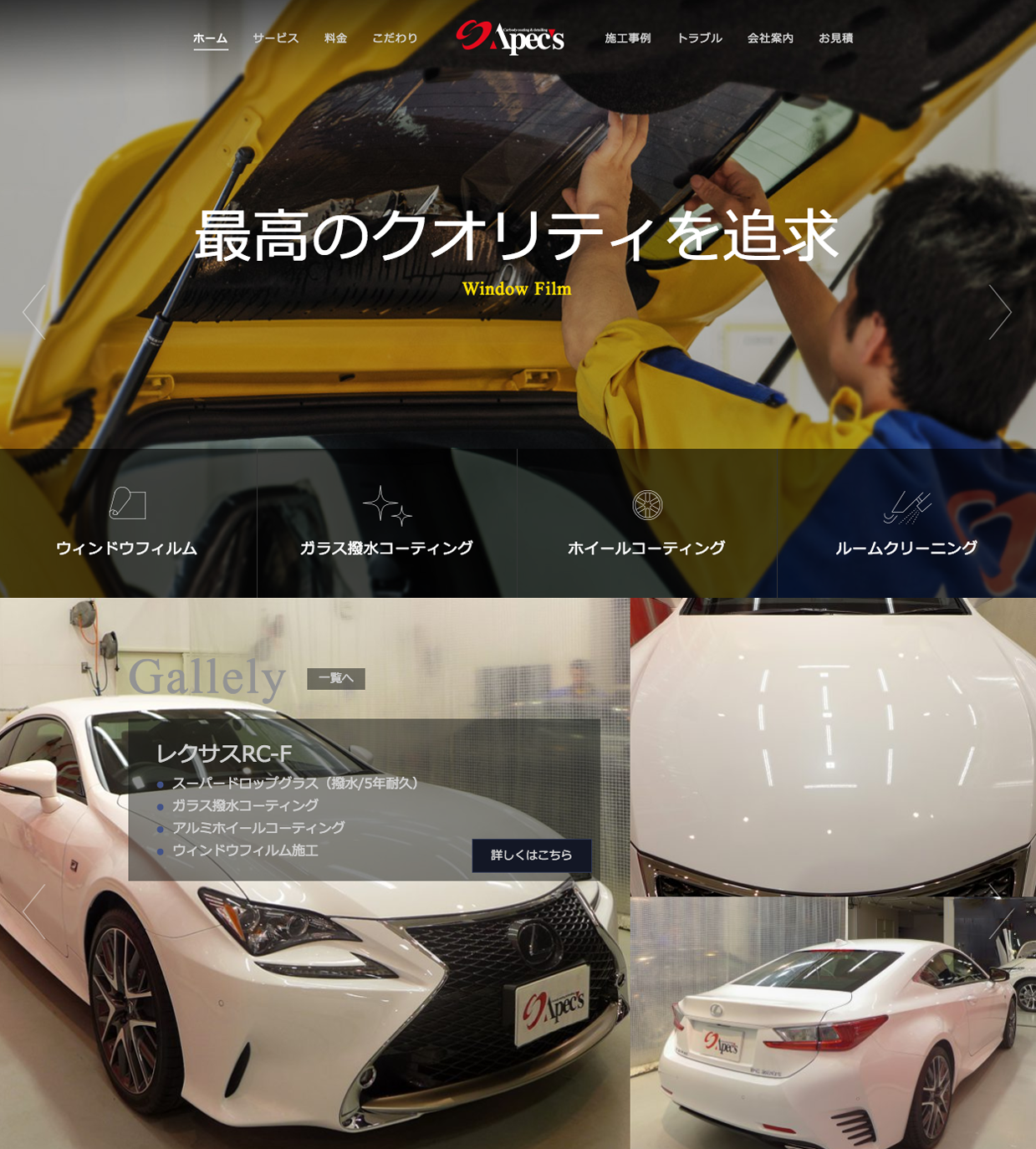 アペックス様の高いコーティング技術を感じてもらうために、写真を多く使うことはもちろん、サイズや切り取り方にもこだわりました。
