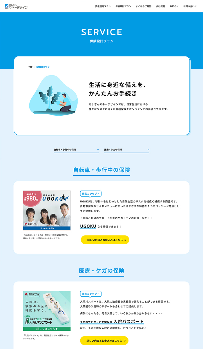 主にオンラインサービスを取り扱っているため、「口座開設」や「保険のお申込み」までの導線設計に力を入れております。