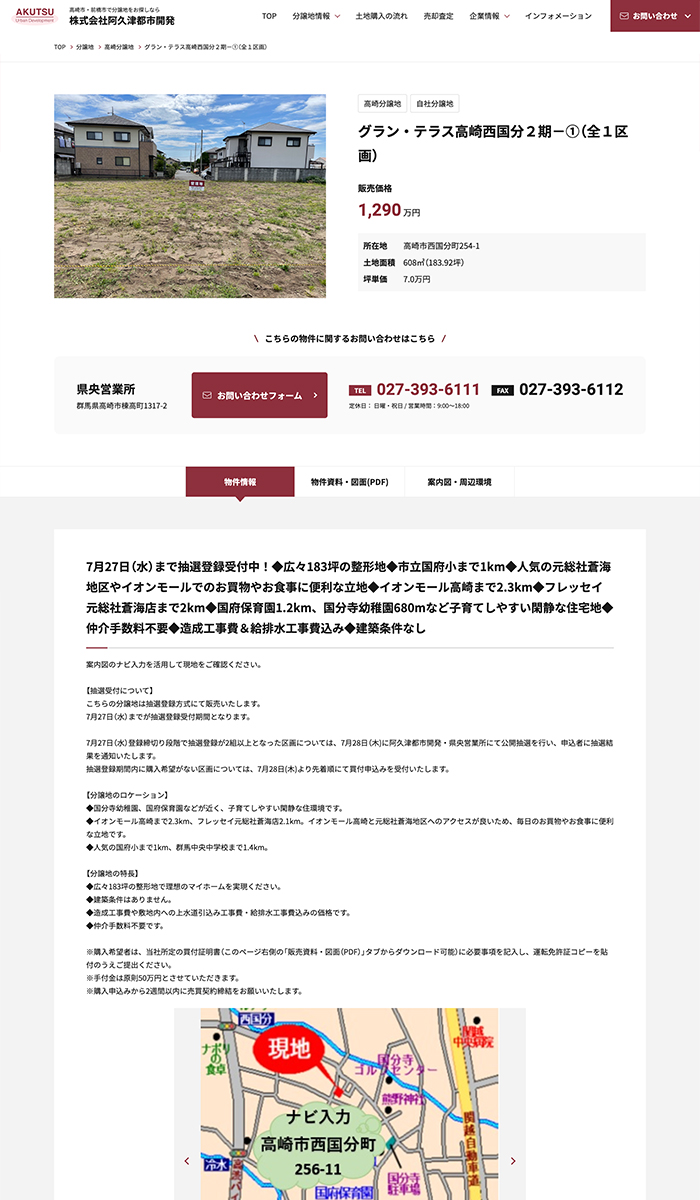 目的や効果を考えた結果、最重要ポイントは「掲載する分譲地情報」がお客様に必要な情報を網羅しつつ、簡単な操作感かつ更新性を高める事でした。